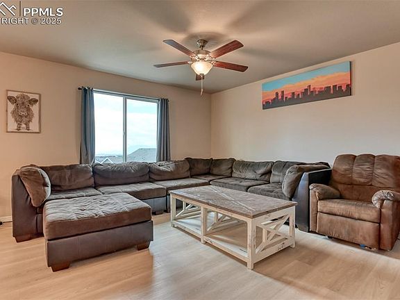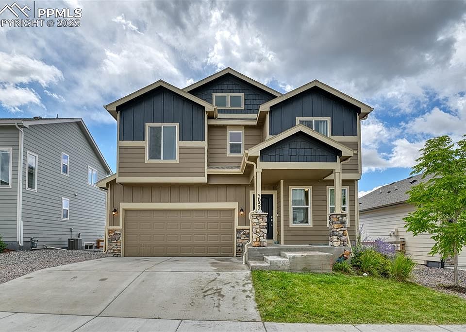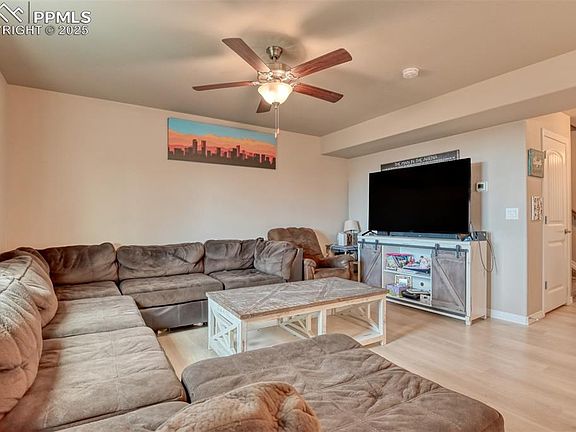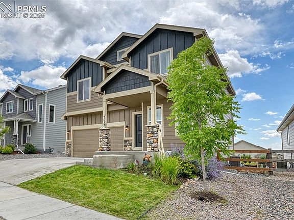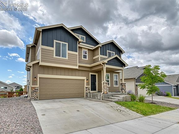 Welcome to this beautiful two story home with finished basement in the wonderful Bradley Ranch community. Upon entering the home there is an office space/den with connected half bath perfect for working from home, or possibly a play room for any kiddos. Down the hallway the home opens up to the living, dining and kitchen. Well lit and boasting quartz countertops this is a great kitchen for cooking while staying connected to any guests or family in the living room. The kitchen walks out to an amazing deck and backyard with a great view of the mountains to the west. Upstairs are four spacious bedrooms, the laundry room and full bath. The large master bedroom has connected five piece bath and walk in closet. In the basement you will find another family room and bonus room which could be a fifth non conforming bedroom or use the entire basement complete with living area, bed area and 3/4 bath as a mother in law suite. The homes come with solar panels lowering those pesky utility bills. Located in district 20 and close to shopping on both the Powers and Union corridor this home is conveniently located to everything the Springs has to offer.
