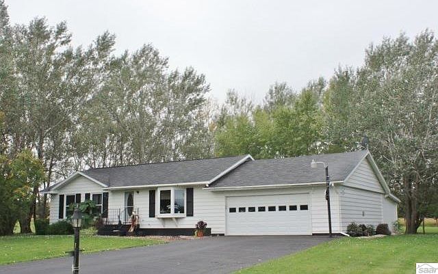 Very well cared for and remarkably clean 3 bedroom ranch on a 2+ acre setting in Poplar. Two car attached garage allows you access right into the kitchen with dining area and living room. Sliding door in the dining area lets you overlook the back yard with nice trees and gardens. Three bedrooms and bath on the main level. Lower level gives you both storage and living space with a large rec room, den or bedroom, 3/4 bath, laundry and furnace room. Many updates including windows, roof, paved driveway and more! You can just move right in! It's a great house at a good price! Also, it has natural gas and Village sewer!