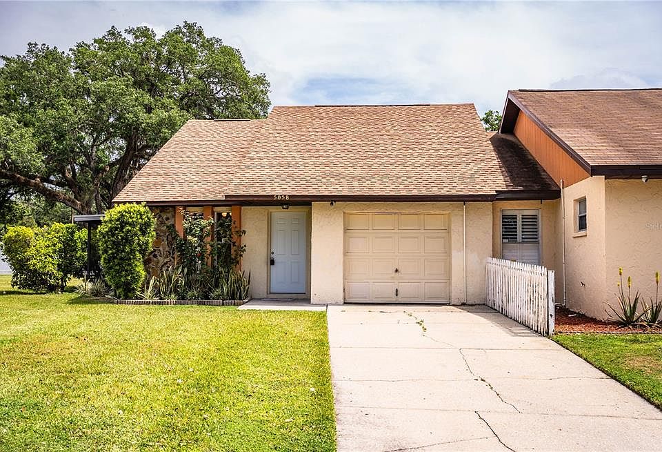 Priced to sell, this is a cute 2/2 with 2025 roof! This half duplex is located in South Lakeland, close to the parkway, shopping and restaurants. Recent updates are fresh interior paint throughout, updated master bathroom and kitchen cabinets/countertops as well as updated guest bath counters and cabinets. There is a small screen lanai for those nice evenings or mornings. Perfect for a young couple starting out or as an investment property with low HOA dues. There is vinyl plank flooring and tile in the home. The HOA provides lawn care and there is a single car garage with washer/dryer hook up.