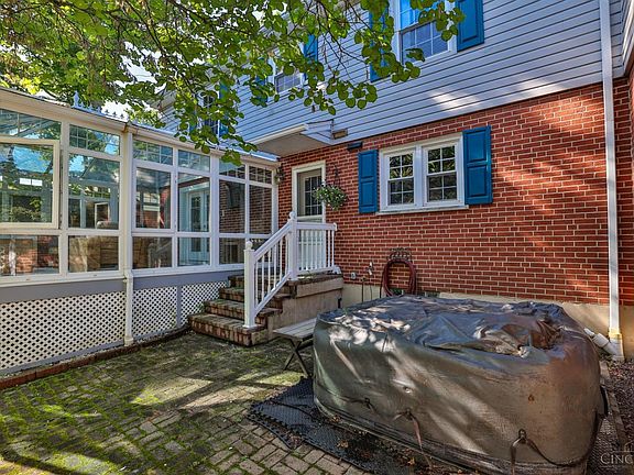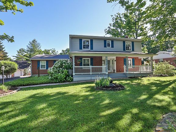 Beautiful 3 bedroom, 2 full, 2 half bath two story situated on a wooded 1/2 acre lot! Great rear yard with a 18x16 three season room leading to an inviting inground pool! Huge equipped eat-in kitchen! Lots of crown molding throughout! Hardwood floors! Bright large living room! Formal dining room! Primary suite with walk in-closet and full bath with walk-in shower! Finished lower level with large family room, study and half bath! New liner in pool 2021! Tankless hot water heater! Washer/dryer stays! Large shed! Great long front porch! Leaded glass front door! Upstairs has 10x4 storage closet! Seller would like at least 2 weeks after closing!