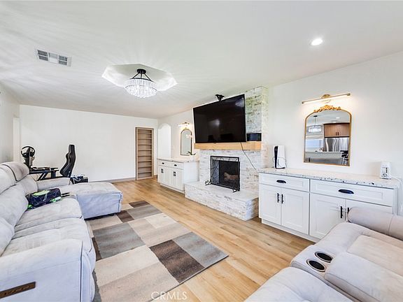 NOW OFFERED AT $599,999 – SIGNIFICANT PRICE REDUCTION! NEW SOLAR PANELS INCLUDED IN PRICE! Seller is highly motivated and needs to sell fast on this stunning single-story home nestled on a spacious corner lot in a private cul-de-sac. Fully remodeled with high-end finishes, it also features a new roof, fresh landscaping, and taller privacy fencing. An open great room showcases a large tile fireplace with built-ins, waterproof laminate flooring, recessed lighting, and custom window treatments, flowing into a gourmet kitchen with Kemper Willowby cabinets, Calacatta Arno quartz counters, floating glass hood, custom breakfast nook, and stainless steel appliances. Both bathrooms shine with frameless glass showers, LED vanity mirrors, and black waterfall faucets, while smart-home upgrades—including a Nest thermostat, Ring doorbell, and security cameras—add convenience and peace of mind. Outside, enjoy a private oasis with lush turf, two covered patios, finished concrete, and a sparkling pool & spa. The oversized driveway offers RV/5th-wheel parking, and the two-car garage includes a built-in work desk. No HOA, no Mello-Roos, and just minutes from top schools, La Sierra University, shopping, and major freeways—this move-in-ready gem won’t last long!