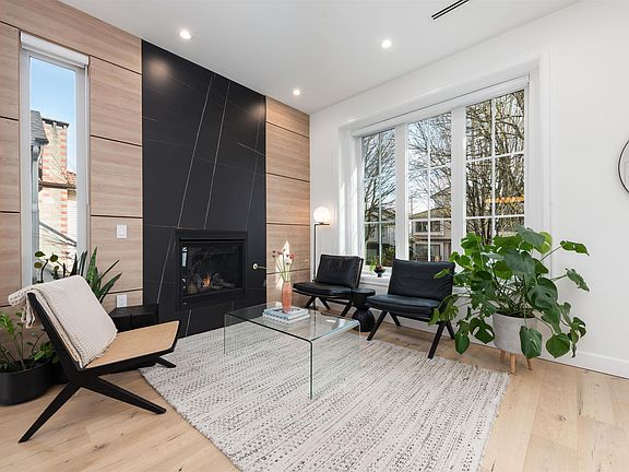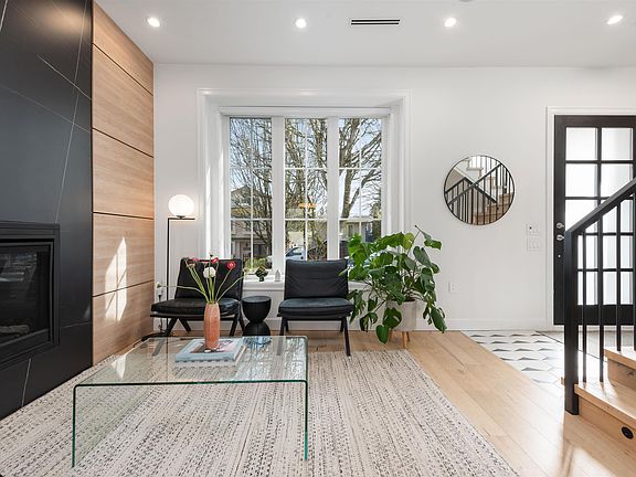 Stunning modern home in Vancouver, between Fraser & Knight! This 5-bed, 5-bath residence blends style and functionality with 10-ft ceilings, a sleek chef’s kitchen, and an open-concept living space. Expansive 12-ft sliding doors lead to a private outdoor area with a dual gas hook up, perfect for entertaining. Upstairs, find three spacious bedrooms, including a luxurious primary suite. The lower level features a legal 2-bed suite with a separate entrance, plus a rec room and full bath—ideal for a home office, gym, or spare bedroom. Enjoy built-in speakers and air conditioning for year-round comfort. A detached 2-car garage plus an extra parking spot provide ample space. Thoughtfully designed with elegant built-ins, warm wood tones, and modern black accents, this home exudes sophistication.