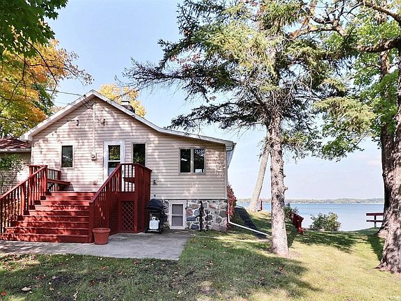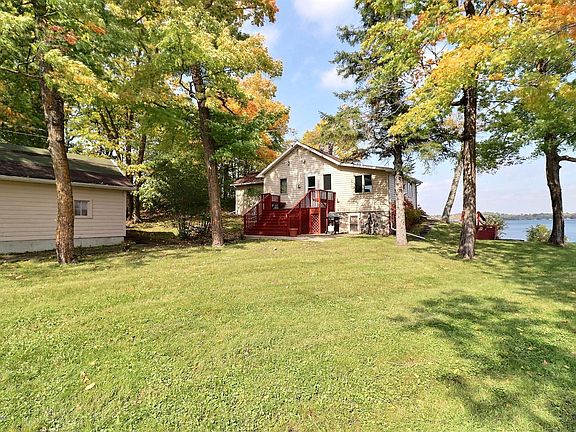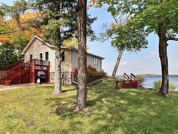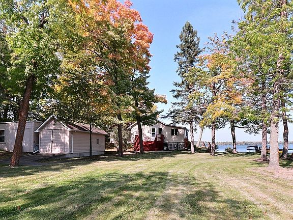 NEW PRICE! 140 Ft on Big Pelican Lake! 3 Parcels! A true lake cabin feeling from this quaint 2BR cottage that has knotty pine walls and a wood burning fireplace! The cabin is nicely situated up close to the lake with just a few steps to the water, great views, and an awesome large deck for entertaining! Lakeside patio doors allow for plenty of sunlight and lead right out to the deck from the main bedroom as well. Detached garage and shed! Enjoy now while having plenty of room to build your dream home someday! Survey!