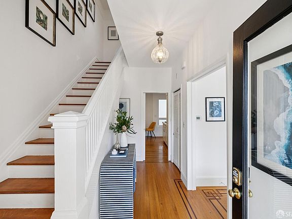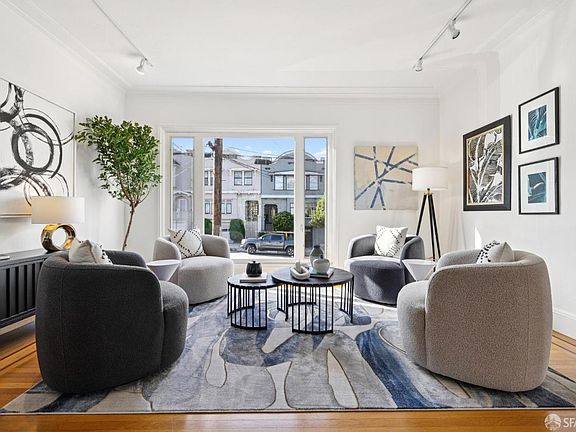 Edwardian elegance with timeless appeal, this classic Inner Richmond home is set on a beautiful, sought-after block and blends graceful architecture with a thoughtful layout of spacious rooms and remarkable natural light from abundant skylights. The main level opens with a gracious living room with elegant hardwood floors, soaring ceilings, and period charm. A formal dining room surrounded by skylights and windows enjoys peaceful garden views, while the bright kitchen offers space for a breakfast table and generous storage. A sun porch opens to the expansive garden. A convenient full bath plus a powder room complete this level. Upstairs finds three comfortable bedrooms, a spacious full bath with a double sink, home office, and attic. The expansive garage has one-car parking, laundry, ample storage, and additional parking in the driveway. A home where heritage meets harmony, this bright Edwardian treasure blends classic character with comfort for the generation to come.