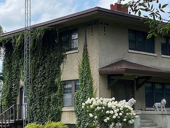 Beautiful historic home and great yard on 2 1/2 lots. Original hardwood floors & woodwork. Dining room built-in. Two sets of French doors. Heated tile floor in kitchen. 4 spacious bedrooms, 2 baths, loads of storage. 2-story playhouse w/electricity. Natural stone patio w/privacy fence. All appliances included. Finished full, dry basement. Maintenance free privacy fence. Detached garage.