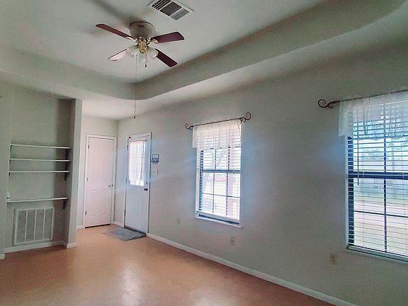 Welcome to this cheerful 2-bedroom, 1-bath home designed to make the most of natural light with plenty of windows throughout. The inviting living room features a tray ceiling and ceiling fan, creating a bright and airy space for relaxing or entertaining. Both bedrooms are comfortably sized and also include ceiling fans for year-round comfort. The home comes equipped with a stove, washer and dryer, plus a large pantry and a dedicated dining room making everyday living convenient and functional. Enjoy outdoor living on the covered front patio, the perfect spot for a morning cup of coffee. Out back, the spacious porch sets the stage for family barbecues and gatherings. With just a little attention, the backyard could easily be transformed into a lush garden retreat ideal for anyone with a love for landscaping. Move-in ready and full of charm, this property is ready to be enjoyed for years to come.