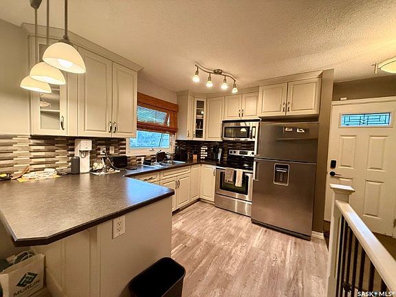 This bungalow offers 1232 sq. ft. of living space with updates throughout the main level. The open concept design features a bright front-facing living room, spacious dining area, and a functional U-shaped kitchen with plenty of cabinetry, updated countertops, and modern backsplash. Large windows provide natural light and a welcoming view of the front street. The main floor is finished with attractive laminate flooring and includes two comfortable bedrooms and a 4-piece bath complete with a separate shower, tub, and convenient linen storage. A bonus room off the back provides access to the fully fenced yard—perfect for an office, playroom, or extra living space. The basement is a blank canvas, ready for your personal touch. The only completed room is a 3-piece bathroom, giving you a head start on creating a family room, extra bedrooms, or hobby space. The exterior walls have been insulated. Step outside to enjoy a generous backyard with a two-tier deck, ideal for entertaining or relaxing. This property offers plenty of potential and is a great fit for a handyman or buyer looking to add value. Don’t miss this opportunity—call today to book your private showing!