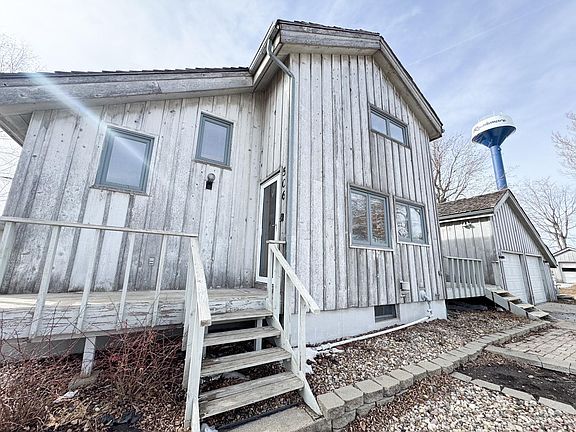 Home Sweet Home! Just 10 miles from Worthington and 10 miles from Adrian welcomes you to this very unique home in Rushmore, MN. This is a very fun home inside and out! Vaulted ceilings, open staircase, wood floors, wood burning fireplace and so much more! 2 bedrooms, 3 bathrooms. The main floor features a large living room space with a beautiful fireplace, kitchen, eat in dining room, 1/2 bathroom and a den/possible 3rd bedroom/formal dining room option. Up the open staircase is 2 bedrooms and a full bathroom. Downstairs features a family room with a little bar area and built in office spot, laundry room and 3/4 bath. Lots of storage. Some updates include fresh paint, some new main floor flooring, lighting, new stove, dishwasher, washer and dryer. The central air and water heater were new in 2022. Lots of outdoor space to entertain on the back deck or patio. Double, detached garage and another single garage and utility shed to store all your lawn tools, vehicles and more. Call to make an appointment to see this home before it's too late!