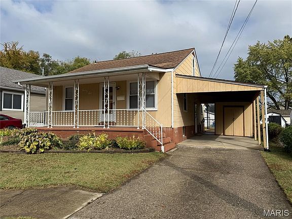 Charming bungalow in a rapidly appreciating area near Frenchtown north of Historic Main Street St Charles—just 5 minutes from I-70 & 5th Street and 2 minutes from I-370 & 3rd Street! This 1.5-story home features hardwood floors, three bedrooms on the main level, and a versatile second floor perfect for a fourth bedroom, office, storage or hobby space. The A/C and furnace were replaced in 2023. The home is livable now with excellent potential to gain sweat equity and update for After Repair Value similar to nearby 630 N 6th St, which recently sold for $302,000. Enjoy a fenced yard, inviting front porch, and huge covered patio in back—perfect for parking your golf cart before cruising to thriving Frenchtown and Main Street districts nearby. The full basement offers space for a workout area, workshop, or recreation zone. Alley access allows for golf cart access, future extra parking or a future garage. Includes off-street parking in the driveway, a carport with attached shed, and additionally a large backyard shed. Prime location close to shopping, restaurants, and downtown St. Charles! Showings begin Saturday, November 1 at 11AM.