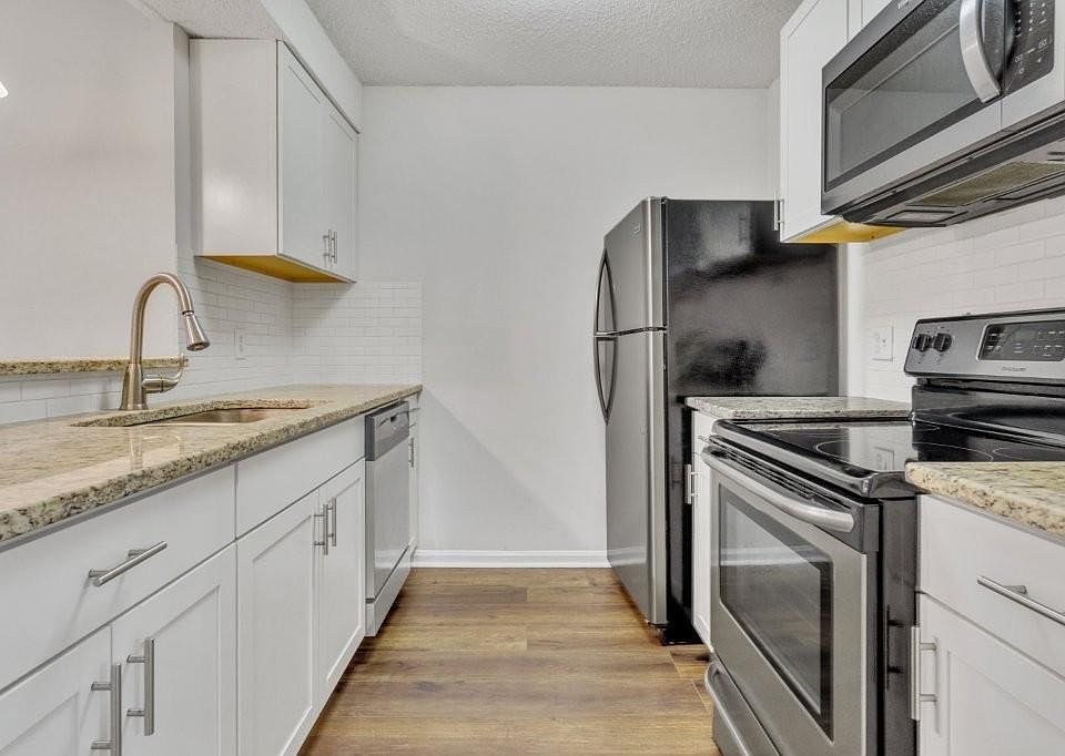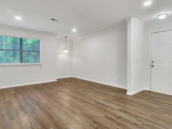 Discover this beautifully updated and peaceful 2-bedroom, 2-bathroom condo in the heart of Sandy Springs. Step inside to find an inviting layout with a dedicated dining area that flows seamlessly into the living room and kitchen. The kitchen shines with white cabinetry, granite countertops, and stainless steel appliances. The spacious primary suite features an updated bathroom and a walk-in closet, while the large secondary bedroom offers great flexibility—perfect for guests, a home office, or both. A second full bathroom is conveniently located off the hallway. Stylish and durable LVP flooring runs throughout the main living spaces. Outside, enjoy your private back porch overlooking serene wooded views—ideal for relaxing or letting pets out with ease. An oversized outdoor storage closet adds extra convenience. This move-in ready home is just steps from the community pool and mailbox, and minutes from schools, parks, shopping, dining, and GA-400. Full of charm and modern updates, this condo is ready to welcome you home!