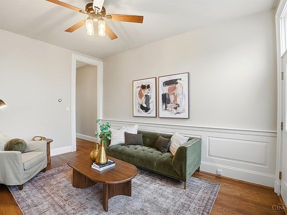Perched in historic Mount Adams, this 1884 charmer blends timeless character with thoughtful updates. With 2 bedrooms, 1.5 baths, and a flexible space that could be a 3rd bedroom, office, or creative nook, it adapts perfectly to your lifestyle. The remodeled kitchen has a gas range, new marble counters and maple inset cabinets, while restored exposed brick, living room built-ins, and new hardwood floors on 1st floor which add warmth and character. All appliances and TV are included, making this home move-in ready. Step outside to the new back patio for gatherings or head up to the rooftop deck for sunrise coffee or sunset wine with sweeping skyline and river views. Parking is effortless with a 1-car garage, front-of-house, and on-street spots. Steps from OTR, the CBD, riverfront parks, and Newport on the Levee city energy meets neighborhood charm.