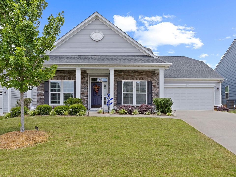 Charming Single-Level 3-Bedroom Home with Office, Modern Features, and Prime Location Welcome to this beautifully maintained 3-bedroom, 2-bath single-level home that offers both comfort and convenience. The spacious owner’s suite is located on the main level and features two generous closets and a private en-suite bath for ultimate relaxation. Designed with functionality in mind, this home includes a separate office—perfect for remote work, studying, or a creative space. Inside, you'll find stylish Hand Scraped Real Wood flooring throughout the main living areas, granite countertops in the kitchen, and a double wall oven—ideal for home chefs and entertainers alike. A large walk-in pantry offers excellent storage, and the open-concept layout provides a seamless flow between the kitchen, dining, and living areas. All appliances convey, including the refrigerator, washer, and dryer—making your move-in experience smooth and hassle-free. Step outside to enjoy a covered front porch perfect for morning coffee and a private backyard patio that’s ideal for entertaining or winding down in the evening. The fully fenced yard includes a built-in sprinkler system for easy lawn maintenance. The attached two-car garage features a convenient utility sink. Located in a friendly neighborhood with sidewalks perfect for walking, biking, and jogging, residents also enjoy access to a community pool—great for summer fun and socializing. Situated just minutes from popular restaurants and shopping, this move-in-ready home blends modern finishes with thoughtful details. Short drive to Eaton, Draexlmaier, Mocom, and BMW. Don’t miss your chance to own this well-appointed home in a highly desirable location!