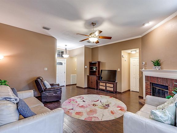 Experience comfort and convenience in this well-maintained single-story home offering 3 bedrooms and 2 bathrooms in the desirable Wells Point community. Situated in an established neighborhood known for its prime location and easy access to everyday essentials, this property blends functional living with timeless charm. The welcoming brick exterior and attached 2-car garage create strong curb appeal. Inside, an open-concept layout features tile and laminate flooring throughout the main living areas—no carpet in the primary spaces. The spacious living room centers around a cozy double-sided gas fireplace that extends into the primary bedroom, adding warmth and architectural interest. The living area flows seamlessly into the eat-in kitchen, complete with a breakfast bar, granite countertops, generous cabinetry, and quality black appliances. The primary suite is a true retreat with a vaulted ceiling, fireplace, walk-in closet, and a private en-suite bath featuring a dual vanity, soaking tub, and walk-in shower. Two well-sized guest bedrooms share a full guest bath, offering comfort and flexibility for family, guests, or a home office. Step outside to a spacious backyard with a privacy fence and patio—perfect for relaxing, grilling, or playtime. Energy-conscious buyers will appreciate the owned solar panels, which the sellers report have eliminated their electric bill since installation, providing both cost savings and peace of mind. All of this in a fantastic location close to shopping, dining, parks, major employers, and easy commuting routes. A wonderful opportunity to own in one of the area’s most convenient and established neighborhoods. Schedule a showing today!