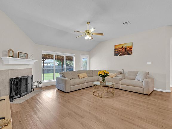 This beautiful single-family home is move-in ready and brimming with charm, offering no HOA and an unbeatable location. Step inside to a spacious, open floor plan featuring a formal dining room, breakfast area, and a versatile studio—perfect for a home office or creative space. The kitchen is truly the heart of the home, with a large island, extended peninsula bar, tray ceiling, and skylight that fill the space with warmth and natural light. The living room boasts soaring vaulted ceilings, a cozy fireplace, and another skylight, creating a bright and welcoming atmosphere. The primary suite offers a private retreat with a walk-in shower, double vanity, and ensuite bathroom. With 3 bedrooms, 2 full baths, no carpet, laundry room, and walk-in closet, this home blends comfort and convenience seamlessly. Outside, enjoy a deck and patio for entertaining, a fenced backyard for privacy, and a shed for extra storage. A two-car garage completes the package, making this property as practical as it is inviting. A perfect combination of style, space, and function—ready for its new owner to move in and enjoy!