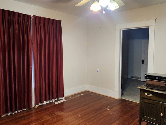 This home with a beautiful covered front porch is waiting for your touch! Family room has nice hardwood floors, eat-in kitchen with updated Corian countertops and newer cabinets, newer dishwasher, plus a nice pantry. Two bedrooms and full bathroom. Laundry is located in the full unfinished basement. Extra large double car detached garage. Long driveway for lots of off road parking. This home is being sold "as is" so must be cash or conventional. If interested, give me a call! Brenda at 3.0.8.7.5.0.7.9.6.7