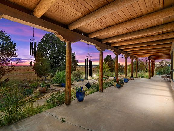 Discover the charm and essence of New Mexico in this custom home, set on a serene 7.5-acre lot. With 3-foot-thick walls, exposed viga beams, and pine ceilings, this home blends traditional craftsmanship with modern comfort. The expansive great room boasts cathedral ceilings, creating an open and airy atmosphere. The spacious bedrooms, versatile kitchenette, and large country kitchen with custom countertops. Enjoy the many outdoor entertaining areas to take in 360 degree views. A 2400sqft+ workhop provides versatily. Many more ammenities, a must see home!