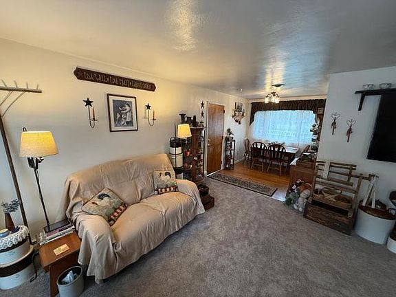 Charming one-story home situated in a quiet location. This property features three bedrooms and one bathroom, with recent updates including a durable metal roof, new carpet in the living room, an updated backyard awning, and a fenced yard. Stay comfortable year-round with central AC. The garage offers unique versatility with drive-through doors providing convenient access from the front to the backyard. Already equipped with heat and a TV, the garage can serve as additional living space, a workshop, or a recreational area. This home is truly move-in ready with no maintenance needed — just bring your things and settle in. Don’t miss your chance to make it yours. Call or text today to schedule a showing!