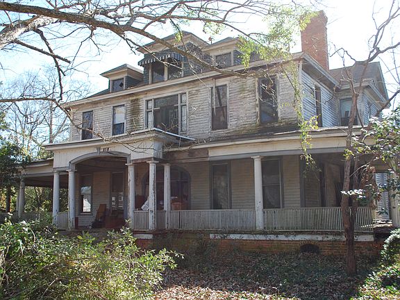 Incredibly solid house with the original beams, supportive masonry and heart pine flooring and staircase as though installed a year before much less nearly 110 years past! Designed in 1909 by famous master NC architect James McMichael from Charlotte, this house is such an amazing structure that deserves above all else, to be restored to its' original glories. Formal "airlock" entry with leaded glass sidelights and ceramic tile floor to the original double doors. Huge formal entry with downstairs "Men's" and "Women's" Parlors, one to the left, the other to the right, access to each through HUGE pocket doors, each room has a 12 foot stenciled floral ceiling and its' own fireplace. Off the left hand parlor is another large room w/ fireplace and closet and door leading to the end of the wrap around porch. Exiting that room, a hallway with a large bathroom (1910 claw footed cast iron tub and matching toilet), continuing to the 3rd large room on that side of the house. Once again, that large room has its' own fireplace, closet and door leading to the back of the house From this room (most likely reserved for the butler) you enter the HUGE kitchen. This room allows for cabinetry on three walls and has been re-framed to allow for a large window over the proposed sink to allow for beautiful natural lighting. The back wall of the kitchen has been re-framed to allow for two doors leading outside, one to the left and another in the right hand corner. Framing has been accomplished to accept 3+ft. x 7ft. double-pane windows as this room gets wonderful East and South sunshine and plans were to remove the existing heart pine flooring (to use for repairs elsewhere) and install waterproof decking boards allowing for a greenhouse. Plans were for 2 sets of French doors between this new room and the remainder of the kitchen. In the back right hand corner of the kitchen is another sizable room which houses the original cast iron boiler. Again plans were for this to be removed and a BRAND NEW propane fired hot water boiler system (it has the capacity to heat 2 houses of this size), which is a $15k value and on hand, to be installed and hot water heat fed through 3 zones of 3/4" PEX tubing under the first floor (for radiant heat) and into the large radiators found in each room. This area can be a huge pantry and has a door leading out to the back of the house. Plans were for an exterior deck to be installed from one corner of the house to the other. The large parlor to the right of the front entry leads to the formal dining room, again with its' own fireplace and door leading to the right hand side of the front wrap around porch. From this room there are doors to the main hallway (to the left), the full butler's pantry and closet, then the kitchen. The grand entry foyer boasts wonderful original mouldings and a gorgeous staircase with a door at the first landing leading back down into the kitchen with a beautiful leaded glass piece above it. Upstairs hallway leading to a windowed storage room above the kitchen, one of 2 bathrooms and 5 upstairs bedrooms w/ fireplaces and closets. Large hallway leads to the front of the house and double doors that led onto the upstairs deck. Also a door that leads up to a wonderful attic with heart pine flooring and ceiling. View the Facebook page "Red Springs,NC Historic Home Restoration" and click upon "posts" to see the videos along with required repair estimates. NOTE: repairs continuing and price will increase as more money is invested into the house reducing what will be needed to complete this project.