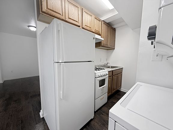 Freshly painted bathroomClassic wooden cabinetryIn-unit washer and dryerEfficient layoutFull-size appliancesGreat cabinet storageRoom for casual dining