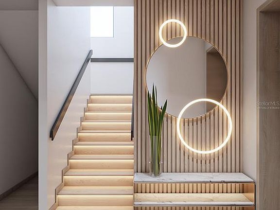 One or more photo(s) has been virtually staged. Under Construction. Experience the perfect blend of modern luxury, thoughtful design, and resilient construction with this stunning new three story residence by Danva Construction. Designed with strength and style in mind, this home features a durable thermoplastic polyolefin roof, impact-resistant windows, a solid concrete block structure, and pilings that provide both peace of mind and timeless elegance. The front exterior, finished in Chantilly Lace by Sherwin Williams which creates a clean and modern curb appeal, enhanced by professional landscaping with Saint Augustine grass, viburnum, and a beautiful magnolia tree. A chrome and code smart Wi-Fi deadbolt with alarm welcomes you inside, where refined interiors showcase soaring ceilings, porcelain tile flooring, and 5 1/2 inch baseboards. The open-concept layout offers four spacious bedrooms, three full baths, and one half bath. The gourmet kitchen serves as a showpiece, complete with a waterfall island, designer backsplash, soft-close cabinetry, and premium Bosch appliances including a 21 cubic foot four-door French door refrigerator, a Bosch Benchmark built-in microwave with sensor controls, an 800 series 36-inch five-burner self-cleaning convection oven, a 36-inch convertible under-cabinet Bosch range hood, and an 800 series 24-inch built-in dishwasher. The luxurious primary suite features a spa-inspired bathroom with a freestanding soaking tub, a modern square shower system package with hand shower, and porcelain tiled walls. Guest baths are equally refined with porcelain tile vanities, and stylish chrome fixtures. Indoor-outdoor living shines with multiple entertainment spaces, including a covered entry, a second-floor balcony finished with porcelain tile, and a covered lanai overlooking the backyard. A full pool package is available for an additional $100,000, allowing you to customize your private outdoor oasis. Additional conveniences include a spacious two-car garage, GE Energy Star washer and dryer, and polished chrome bed and bath privacy door handles. Perfectly positioned just one block from Tampa Bay and only five minutes to Mobley Bayou Beach Park, this home offers a lifestyle that blends privacy and convenience. Downtown Tampa is only 30 minutes away, while Tampa International Airport is less than 20 minutes, making travel effortless. Oldsmar itself is a charming waterfront community known for its parks, trails, dining, and small-town feel, with easy access to both Tampa and the beaches of Clearwater. This rare opportunity to own new construction in such a desirable location combines elevated finishes, resilient materials, and timeless sophistication, creating a residence that is as functional as it is beautiful.