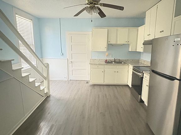 Completely renovated, all surfaces brand new. New flooring downstairs. Brand new refrigerator, oven. Washer and dryer included.