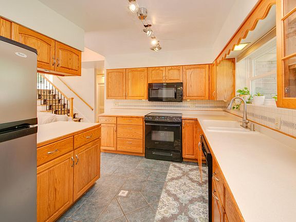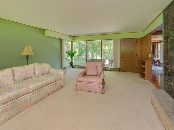 Terrific contemporary home featuring mid century modern architecture. Conveniently located on a quite dead end street backing up to Kindleberger Park . Boasting over 2400 finished sqft, 3 bedrooms and 3 baths. Main floor features an inviting entry/foyer with slate flooring, large LR w/ gorgeous fire place w/ marble surround and access to patio. Large open kitchen w/ eating area with tiled flooring and an abundance of oak cabinets. Dining room with wood flooring,1/2 batch & main floor laundry round out the 1st floor. Second floor boast 2 full bths 3 good size bdr including lrg private master suite w/ an updated private full bth, featuring tile shower, new door & fixtures. Many recent updates includes new furnace , 17, water heater, replacement windows and newer roof. Move in ready.