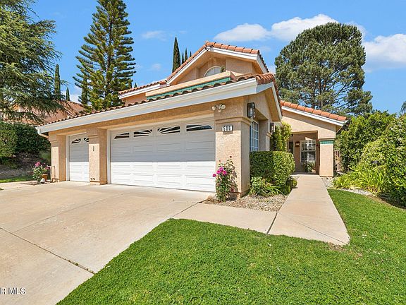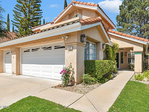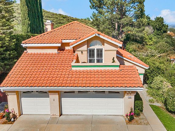 Nestled within the sought-after Regalia tract in Wood Ranch, this captivating property offers an exceptional blend of comfort, sophistication. Step inside to discover a primary bedroom retreat adorned with vaulted ceilings, creating an airy ambiance that perfectly complements the serene spa and lovely backyard. Plantation shutters grace many windows allowing natural light to filter through, while downstairs, a convenient bedroom and bath with a shower offer flexibility and accessibility. With a total of four bedrooms and three baths, including an en suite bath in the primary bedroom, this home is designed for modern living. The kitchen, complete with a walk-in pantry, is illuminated by recessed lighting, seamlessly flowing into the family room is a perfect space for gathering and entertaining. Additional features include indoor laundry, a three-car garage, and an overall light-filled atmosphere that invites relaxation and enjoyment. Plus, upstairs, enjoy golf course and mountain views from the balcony, adding to the allure of this gracious residence. Whether unwinding in the tranquil backyard, enjoying the indoor comforts, or taking in the scenic vistas, this home truly embodies the essence of luxurious living in a prime location.