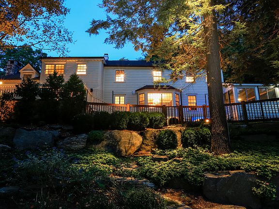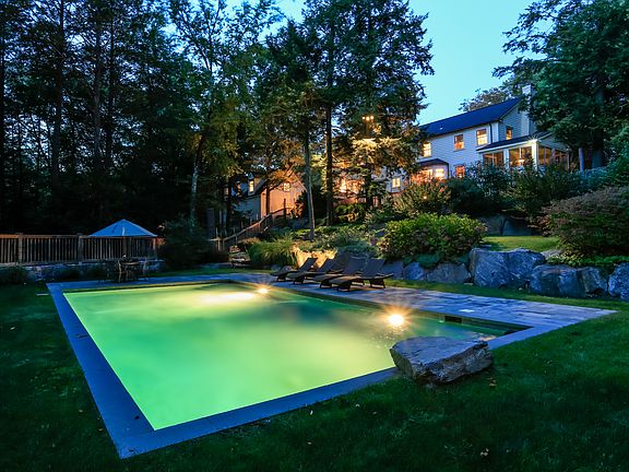 This Colonial Manor is perfectly designed for today's elegant and sophisticated lifestyle. Set privately on over 3.9 country-like acres and abutting the scenic Mianus River Gorge, this home was renovated and expanded in 2004 to perfection on beautifully landscaped grounds with exterior lighting, saline pool and spa. The property has large, open lawn areas that are ideal for sports or outdoor activities. There is even room to add a tennis court. Magnificent in architectural detail and design, this country estate offers every imaginable luxury including coffered ceilings, raised paneling, built-ins, four fireplaces, a three-seasons porch with beamed ceiling, and multiple areas for large gatherings and family entertaining. The custom chef's kitchen, by Christopher Peacock, and light-filled breakfast area includes French limestone floors, white marble counter tops, and high-end appliances. French doors lead out to the shaded deck, adding further allure while creating a relaxed environment. The second level features a master suite with fireplace, tray ceiling, large changing area with five fitted custom closets, a spa-quality bath with a luxurious carved antique marble soaking tub and glass enclosed shower with large vanity. Three additional bedrooms and a large laundry room finish this level. Designed for fun and relaxation, the lower level features a lounge and entertainment space with a garden entrance, an additional bedroom, full bath, a 750 bottle climate-controlled wine cellar and ample storage space. A separate heated garage with a second level loft and bath with over 1000 square feet of finished space. State-of-the-art technology in this home incorporates Wi-Fi and remote-controlled heating, audio, and lighting systems. Additional amenities include a full house generator and exterior propane line for grill. Completing this exceptional country manor is it's proximity to the village, rail station and major roadways. It is also just minutes away to the renowned Jean Georges Inn at Pound Ridge, numerous hiking trails, town park, shopping, the legendary Pete Dye Pound Ridge golf course as well as other private golf courses. A deal at this price!