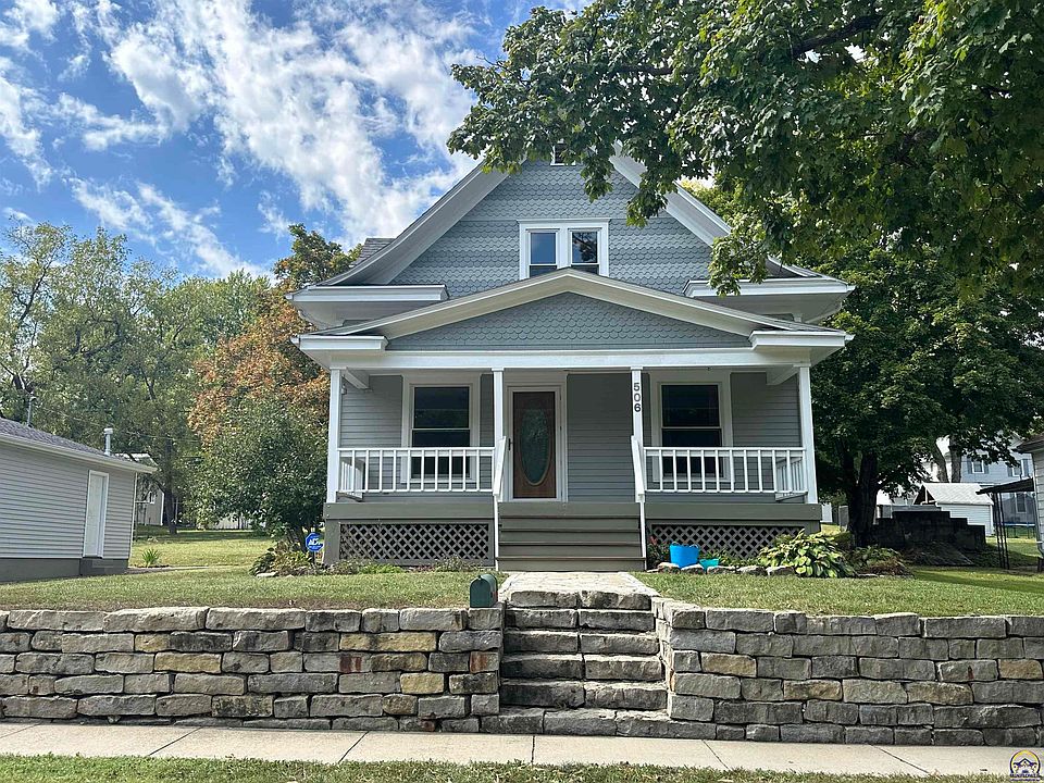 Beautiful 4 bedroom, 3 bath turn of the century home with large 2 car detached garage. Stunning covered front porch for sipping your coffee in the morning and spacious, beautifully landscaped yard. Enjoy the flowing floorplan while entertaining guests. Located in the charming town of Valley Falls, close to amenities like the city park, coffee shop, restaurants, and downtown.