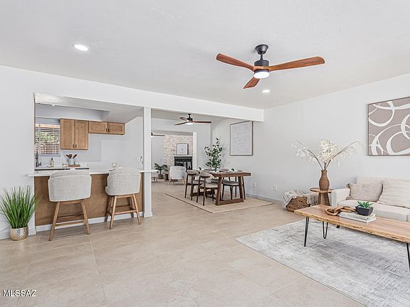 Explore this charming 3-bedroom home w/ a picturesque desert landscape, RV gate, & a practical carport. Updated interior showcasing a living room w/ a soothing palette, blinds, & tile flooring. Family room includes a fireplace for cozy moments w/ loved ones. Gourmet kitchen equipped w/ quartz counters, wood shaker cabinets, track lighting, a pantry, stainless steel appliances, & a peninsula w/ a breakfast bar. The main bedroom offers a private bathroom for added convenience. Lovely backyard, complete w/ a covered patio, a large shed, and a fire pit for evenings under the stars. Don't miss out on this fantastic opportunity! Seller is licensed realtor and related to listing agent.