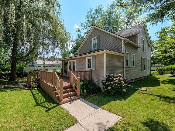 Charming 125-Year-Old Farmhouse in the Heart of Walton Step back in time with this beautifully preserved classic farmhouse, perfectly situated on a spacious corner lot in Walton. Featuring over 1,900 square feet of inviting living space, this 3–4 bedroom, 2 full bath home blends timeless character with today’s modern comforts. Enjoy lazy afternoons on the iconic wraparound front porch (19' x 17' x 6') or entertain on the 19' x 9' back deck overlooking the yard. Inside, you’ll find tall ceilings, original charm, and generous room sizes throughout. The living room (14' x 15') flows seamlessly into a formal dining room (13' x 13'), while the cozy kitchen (11' x 10') provides a perfect space for daily meals. A main-floor bedroom (16' x 12") and study (12' x 9') offer flexible living options. Upstairs, three more bedrooms (15' x 10', 13' x 12', and 12' x 10') are complemented by a large laundry area and full bath, complete with a massive walk-in closet. The 31' x 25' detached garage is ready for your finishing touches—featuring a lofted area, balcony, and endless possibilities for a workshop, studio, or additional storage. Lovingly maintained by its current owner, this home is ideal for anyone seeking small-town living in a community proud to call itself home to Lewis Cass High School. Come discover all that this historic gem has to offer!