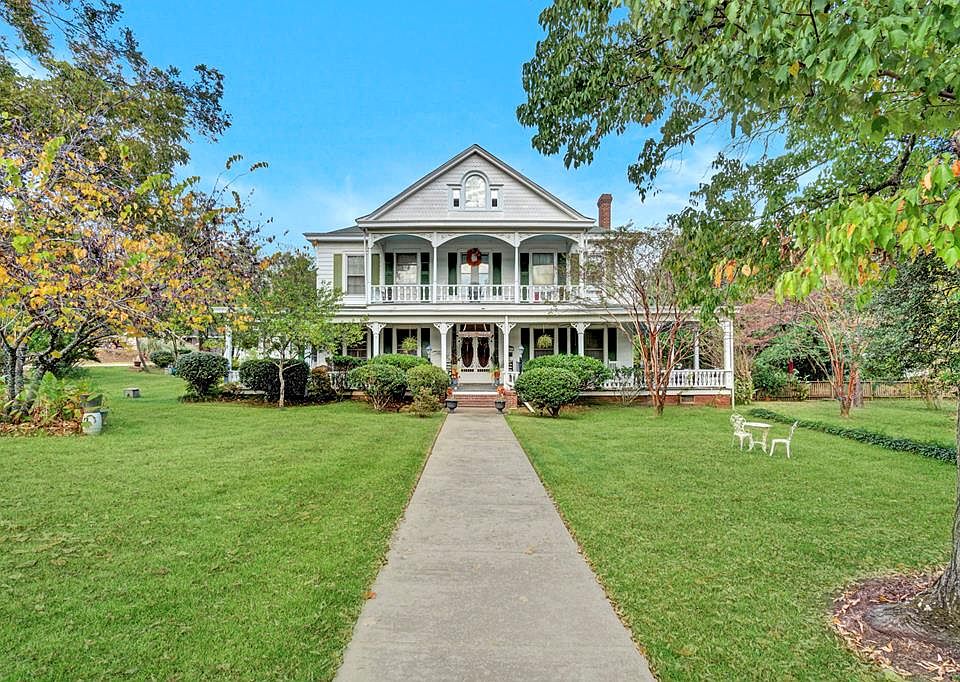 A timeless 1883 residence set amid nearly three acres of manicured grounds. The exterior exudes elegance and heritage while offering privacy and space. Experience the surroundings from the grand 1250 square foot wraparound porch that captures the spirit of Southern Hospitality. Whether relaxing on the swing or entertaining guests, this remarkable space reflects the grace and grandeur of a bygone era. Step through the original double doors into an expansive foyer showcasing high ceilings and preserved hardwood floors that set the tone for this historic home. The grand Foyer leads seamlessly into the formal living spaces and dining, each designed for gracious entertaining and showcasing the home's architectural significance. The kitchen has been thoughtfully renovated to blend modern convenience with vintage charm. The layout and generous workspace is perfectly suited for both everyday living and entertaining. A spacious first floor primary suite offers comfort, convenience and privacy with a king bedroom and en-suite bath. All bathrooms maintain historical charm with tasteful updates, ensuring comfort without sacrificing authenticity. The four bedrooms and three baths upstairs provide flexibility for family or guests, each room reflecting the home's classic character. Outdoor living is elevated with a generous screened porch that extends the homes gathering spaces into nature. The in-ground pool is beautifully integrated into the landscape, offering resort-like amenities with ample decking and picturesque views. Walk downtown to shopping and restaurants. Take a historic tour of the Burk Stark Mansion, McGowan House, welcome center and the Abbeville Opra House. There is so much more to share about this home. Reach out today and discover everything it has to offer.