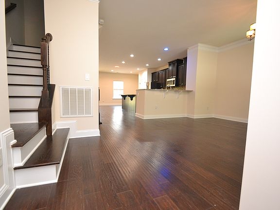 This luxurious and expansive end unit townhome is nestled in a private, yet convenient Apex location and available for immediate occupancy. 506 N. Tunstall Avenue greets you with a tree-lined facade and a timeless brick exterior. A covered entry welcomes you into an interior full of natural light and hardwoods as far as the eye can see. In fact, this property boasts hardwood floors and luxury plank flooring throughout the entire interior; not a stitch of carpeting to be found! The foyer opens on the right to a perfectly-proportioned dining area that includes a custom chandelier, triple windows, crown molding and recessed speakers in the ceiling. The dining room is conveniently located next to the kitchen with a design that ensures the "chef" will never be left alone. Speaking of the kitchen, it's truly impressive! The center attraction is undoubtedly the massive, granite-topped island with a curved edge treatment and breakfast bar. Flanking the right and rear of the island, you'll find additional acres of granite countertops accentuated by a beautiful tiled backsplash, espresso cabinetry and a full suite of sleek, stainless-steel appliances. The kitchen also includes a pantry, a stainless undermount sink and recessed LED lights that can be dimmed for the evenings. The kitchen seamlessly intertwines with an adjacent breakfast area as well as a family room that offers direct access to an elevated rear deck via a sliding glass door. Next, you'll want to visit the lower level that's home to an alley-access 2 car garage (that includes a 220V outlet for a car charger) as well as a massive storage closet and a bedroom with direct access to a full bathroom. At the top level, you'll find three more bedrooms as well as a conveniently-located laundry room with a washer/dryer included for resident's use. Chores just got a little less burdensome; no more hauling laundry up and down the stairs! The primary bedroom is a sight to behold and showcases a tray ceiling with crown molding, double windows, luxury plank flooring, a walk in closet and an en-suite bathroom that looks like it was literally ripped from the pages of a magazine! The owners spared no expense with a full renovation of this space. The "floating" quartz-topped vanity showcases under-cabinet lighting that looks amazing at night as well as dual undermount sinks witih high-end faucets. Dual mirrors with LED backlighting add a high-tech touch as well. The soaking tub sits upon an elevated base with paneled wall and tile treatments, a large window and even a heated towel rack. Rounding-out the primary bathroom experience, you'll surely fall in love with the walk-in shower featuring a river rock base, floor-to-ceiling tiled walls, a hidden drain, a rainfall showerhead, a wand showerhead and a glass enclosure. Bedrooms #3 and #4 are both surprisingly large with double wall closets, luxury plank flooring and lovely natural light. The hall bathroom upstairs was also full renovated with a marble-topped vanity, luxury plank flooring, modern, black fixtures, and hardware and a beautiful walk-in shower with floor-to-ceiling tiled walls, a large shampoo niche, a hidden drain, a rainfall showerhead, a wand showerhead and a glass enclosure.