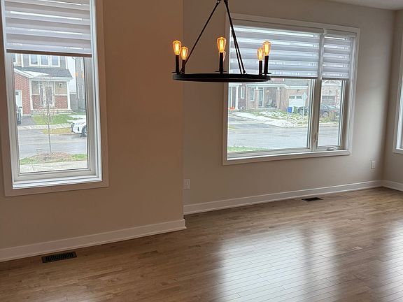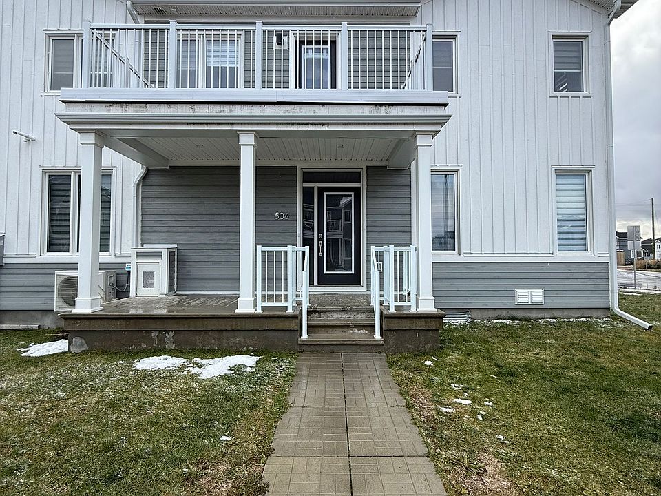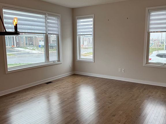 Available December 1, 2025: Spacious and beautifully maintained upgraded end-unit on a premium corner lot featuring approx. 2122 sq ft of finished living space (per builder), rich hardwood flooring on the main level, a bright open-concept design with abundant windows, and a chef-inspired kitchen with granite counters, pantry, stainless steel appliances, built-in microwave and an oversized island; upper level offers 3 well-sized bedrooms including a primary suite with walk-in closet and ensuite, a versatile loft/den, full bath, convenient laundry room, two linen/storage closets and access to a generous balcony; finished lower level provides a comfortable rec room, ample storage and rough-in for future bath; enjoy a double car garage with high ceilings for added storage, custom window coverings, welcoming front porch with railing, and central AC; close to shopping and amenities; tenant responsible for heat, hydro, water, hot water tank rental and water treatment system.