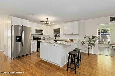 FLASH SALE, seller wants it sold! Major price reduction! 4/2 in the heart of Merritt Island with a NEW ROOF, ELECTRICAL PANEL, KITCHEN/BATHS, WATER HEATER, HVAC, FLOORING & more! An open floor plan connecting the living space to your new kitchen w/white shaker cabinets, beadboard backsplash and new Whirlpool appliances. Then to the light filled dining room presenting open views into your fenced-in yard. Perfect for family, friends, fur babies, a firepit or pool to entertain. Discover fresh paint, new lighting, and Pergo waterproof flooring. There's additional storage in the updated laundry room, and both front & back porches have been perfectly maintained and rescreened, creating the ideal spot to sit and sip your morning coffee or evening cocktail. So close to shopping mall, Cocoa Village, restaurants & only a 10 minute drive to the beach!