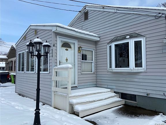 DON'T MISS OUT! This 3 bedroom Mattydale home has been lovingly maintained and has SO MUCH TO OFFER. This 3 bedroom ranch home has 2 full baths and is located on a neighborhood street yet close to shopping, restaurants and highways. Inside you'll find a generously sized kitchen open to the living and sunroom. The living room features a gas fireplace and niche built to accommodate your TV and all the electronics that go with it. Just inside the front door is a bonus room that is open to the living room and can be anything you want. Use it as a sunroom and enjoy your morning coffee here - or - turn it into a mudroom/landing space. Originally a porch, this space was renovated about 10yrs ago and adds (approximately) 120 additional sq. feet. 3 bedrooms - 1 with sliding doors to the backyard - and a full bath complete the main level. The basement is large, dry and clean; and features a 2nd full bath. Outside you'll find a fully fenced back yard with shed. FURNACE= 6mo. ROOF = 12yrs A/C = 2yrs. Updated WIRING = 10yrs