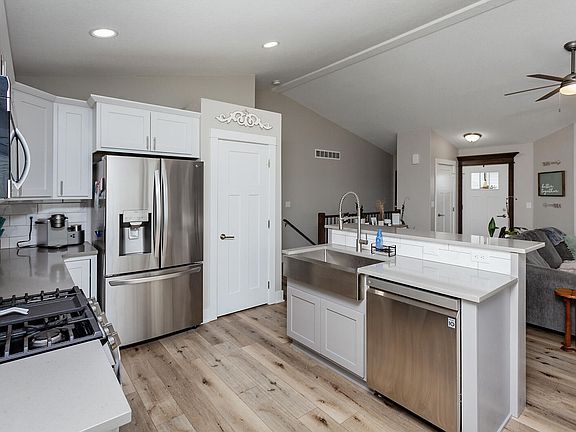 Check out our newest Huxley listing. 506 Prairie View is a better than new chic, ranch-style home featuring 4BR, 3ba and an open floor concept with over 2100 sq. ft of living space. Exterior details include slate blue vinyl siding, board and batten details, stylish house numbers and a cozy front porch with stone column accents. Upon entry you'll take note of the electric fireplace, open rail staircase, LVP flooring and vaulted ceiling. The kitchen/dining area hosts white cabinetry, quartz countertops, spacious pantry, stainless appliances and direct access to the backyard through the sliding glass door. You will love all the natural light that floods the space. The primary suite is on the main level; with walk-in closet and ensuite ¾ bath with dual sinks and tiled shower. Also on the main level is a 2nd bedroom, full bath and laundry/mudroom area. The lower level is the perfect place to hang with friends or watch a movie. A 2nd electric fireplace, built-in entertainment system and drybar area add character and charm to this spacious lower level. Built in 2021. All appliances stay. 3 car garage, convenient deck and storage shed.