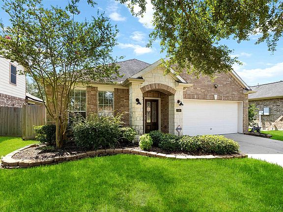 Step into comfort and style in this beautifully designed single-story home, where functionality meets inviting open spaces and peaceful privacy. With 1,895 sq ft of thoughtfully arranged living space, the home welcomes you with a formal dining room that flows seamlessly into the open-concept kitchen and spacious living area, complete with a breakfast nook and bar seating. A dedicated office space includes built-in shelving and a desk, providing the perfect setup for working from home or managing daily tasks. The private primary suite is tucked away at the back of the home and features a walk-in closet and a tub/shower combo. Two additional bedrooms are centrally located, offering both convenience and privacy. The backyard is ideal for entertaining, featuring an extended patio, generous yard space, a newly installed fence, and no back neighbors for added seclusion. The garage has an epoxy-coated floor, offering a clean, durable finish.