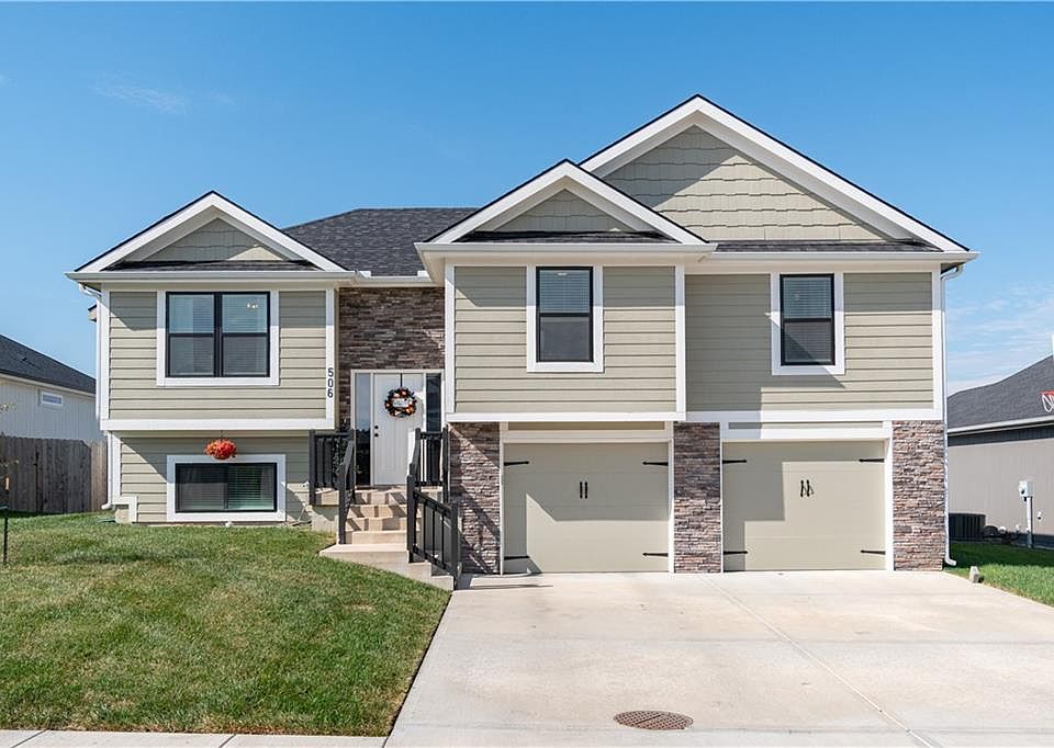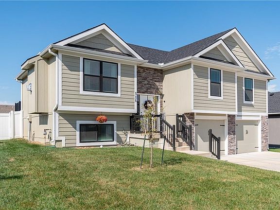 Welcome home to this nearly new, beautiful split entry home in Grain Valley. Built in 2022, this home offers 4 bedrooms, 3 full bathrooms and 2 car garage. Spacious living room with a stunning stone accented fireplace leads you into a nice dining area and kitchen with ample cabinet space, granite counters and pantry. 3 bedrooms along with laundry are on the main level! Primary suite offers great space along with a private bath with a large vanity, tile shower and oversized tub. Other two bedrooms are great in size and near the 2nd bathroom. Downstairs you'll find the large 4th bedroom, rec space & 3rd bath. The backyard is beautiful and flat with a great sized deck and fully fenced! The 2 car garage is deep, great for vehicles, tools, toys & storage. Great neighborhood with no HOA. There is truly nothing to do here but move in!