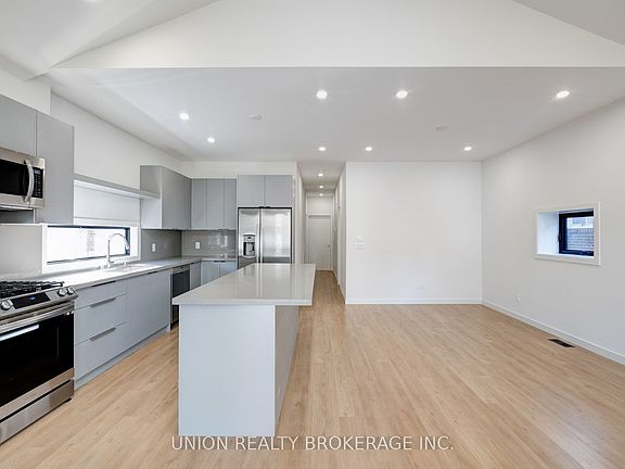 Gorgeous, modern & bright main floor suite in the Upper Beach! Over 1000 sq ft. with luxury finishes and no detail missed. This suite is fully separated w/ a private entrance and offers two spacious bedrooms (King-sized beds welcome!) and two full bathrooms. Yes, that means an ensuite bathroom in the primary. Comparable to a boutique condo, enter into a huge open concept living space w/ 12 ft. vaulted ceilings, & oversized windows throughout, allowing for tons of sun and natural light. Spacious, designer kitchen with oversized island, gas stove and built-in stainless steel appliances. Ensuite laundry & a cozy walk out balcony w/ Westerly sunset views. Conveniently located within walking distance from the Danforth GO Train, TTC, many local parks, schools and grocery shopping. Street permit parking available! This suite is one of a kind and perfect for the pickiest of Tenants!