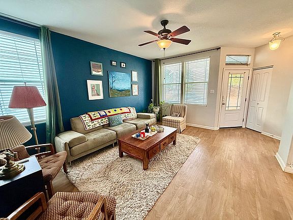 Welcome Home! Step into this stunning 3-bedroom, 2-bathroom residence offering 1,388 SF of beautifully designed living space. Enjoy the modern elegance of luxury vinyl plank flooring throughout no carpet anywhere paired with eye-catching designer accent walls and cabinetry. The open-concept layout flows effortlessly from the spacious living area into a stylish kitchen featuring a center island, gas range, stainless steel refrigerator, and generous dining area perfect for everyday meals or entertaining guests. Outside, relax under the covered porch or enjoy the spacious backyard complete with a privacy fence and pet-friendly atmosphere. The detached 2-car garage and included washer and dryer add everyday convenience. Located for an easy commute to both Austin and San Antonio, this home sits in a welcoming community offering a park, soccer field, playscape, and shaded gazebo. Available November 1st, this gem combines comfort, charm, and value don't miss out on this rare opportunity at an affordable lease price!