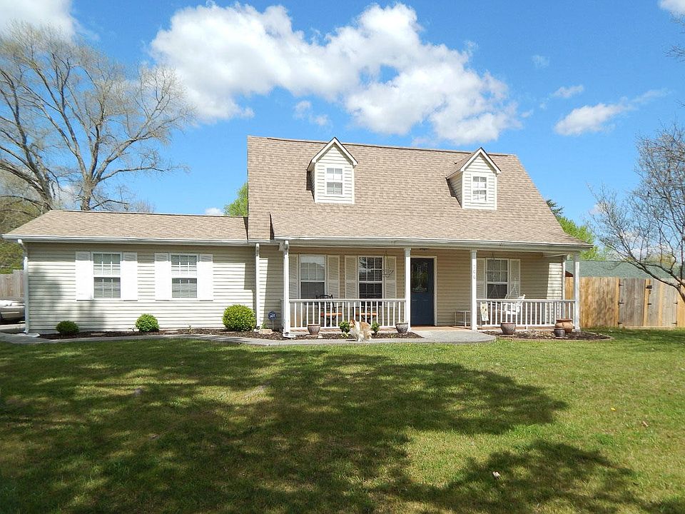 ADORABLE CAPE COD! This absolutely darling move-in ready 2-story home is easily accessible (no stairs to enter) and boasts a desirable split bedroom floor plan with a cozy living area and a main level master bedroom. Features beautiful laminate flooring throughout, neutral paint colors and a delightful eat-in eat-in kitchen w/ new appliances & pantry. Updates since 2012 include the roof, a new front door, double-pane windows, stonework around the fireplace and a brand new hot water heater (2017). Relax with a good book on the covered front porch or entertain guests on the private back deck with a fire-pit area that overlooks the large fenced backyard. Located just minutes from area schools, Halls and Harbison Crossroads.