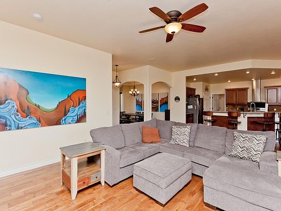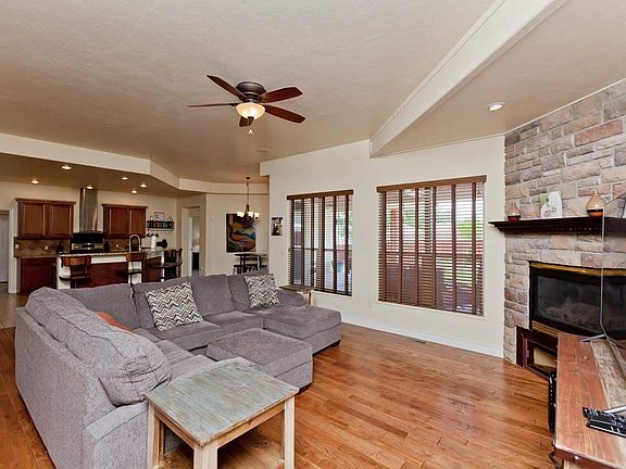 This property is quiet and peaceful, in a cul-de-sac off a dead end road, with quick and easy access to trails. Awesome location, tucked away yet close to town and walking distance to schools. Great use of space in this home with split floor plan and all 4 bedrooms on the main level. Kitchen includes a pantry, tons of cabinet and counter space. Eating area that opens up into the living room with gas fireplace. Separate dining room that opens to the kitchen and living room. Perfect floor plan with great use of space. The Master has two huge walk in closets, walk in shower and a large soaker tub. All of the bedrooms are large with huge closets and built in storage. Newly landscaped yard that is fully fenced with plenty of room for a hot tub. Large covered patio with gas hook up, speakers and ceiling fans. This is a great house for entertaining inside and out.