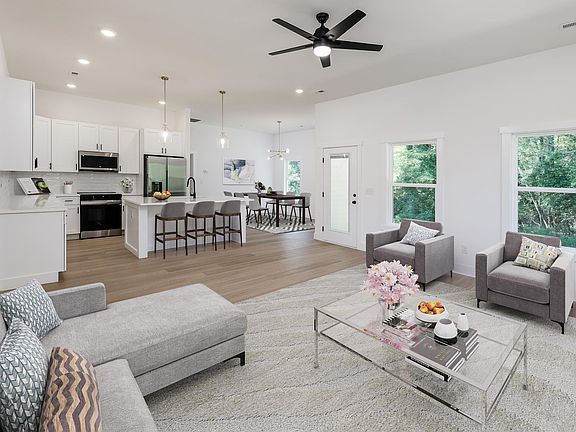 Welcome to a beautiful new construction home where high-end upgrades and thoughtful design come together to give you comfort, convenience, and that “wow” factor at every turn. Enjoy 9-foot ceilings in every bedroom, creating a grand sense of space and airiness, and step into the open-concept living room with dramatic 10-foot ceilings that elevate your everyday living. From the sleek tile floors in the bathrooms to the gorgeous quartz countertops, every detail has been hand-selected for beauty and durability. The luxury vinyl flooring throughout means no carpet and no worries. Designer backsplash, modern fans in every bedroom and the living room, pantry with built-ins, and a covered patio for relaxing evenings or morning coffee - it’s all here. And yes, even the refrigerator is included in your fully equipped kitchen. With ample cabinetry, you’ll have a place for everything and then some. Beautiful mature trees in your backyard. Claim this home as yours! Closing Cost Help Provided!