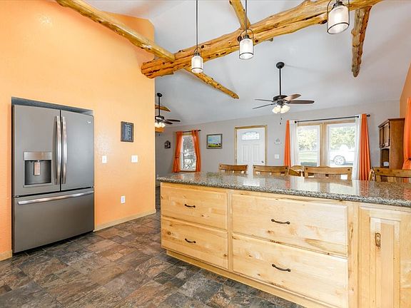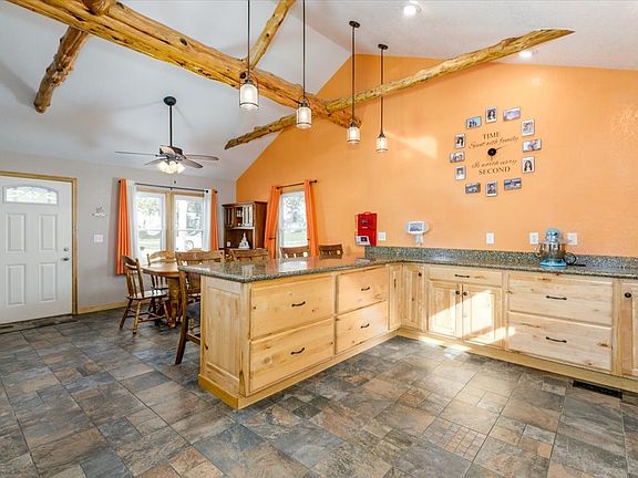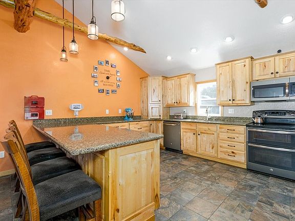 You will be pleasantly surprised by how much space this 5-bedroom, 3-bath home offers with over 2,900 square feet of finished living area on the main floor and in the basement. The open kitchen features a vaulted ceiling with natural wood beams, brushed stainless steel appliances, stone countertops, porcelain tile floors, and beautiful natural wood cabinets.