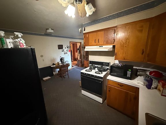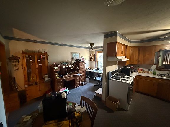 Investor property with bones for developing the 1945 home. An added back room with many uses. Kitchen/living and office area in the middle of the home. A basement entrance from the kitchen for safety during those stormy nights. Close to the school and the businesses of downtown. Selling "AS IS" with contents. Schedule a day ahead for viewing. (Portable building sold separately)