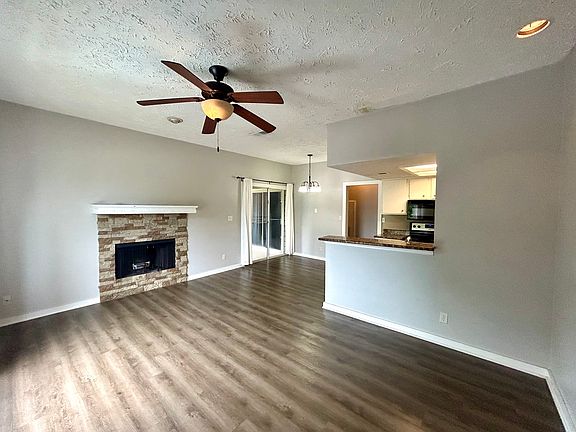 Cozy wood burning fireplaceStainless steel appliancesKitchen offers granite countertopsLarge closetsSpacious covered patioPlenty of cabinet space