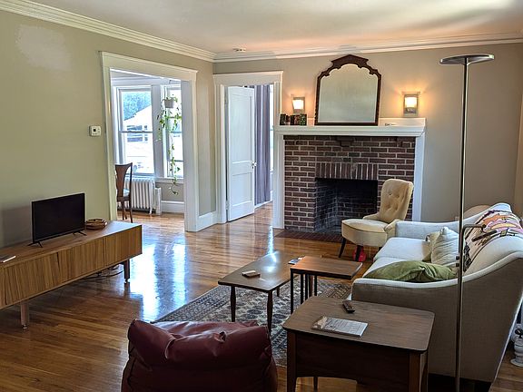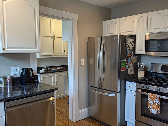 Available 9/1. YOUR SEARCH IS OVER! Huge, modern 4 bedroom on top 2 floors of a 2 family. Fabulous location less than a mile to Boston College and the Green Line, on the express bus line to Copley Square, and with easy access to the Mass Pike. Located in a wonderful neighborhood close to Oak Square, Brighton Center, restaurants, YMCA, parks, golf course, Chandler Pond, and more. Features a beautifully updated kitchen with stainless appliances, extra storage and a charming built-in eating nook. Large living room with decorative fireplace, formal dining room, and modern bath. 3 bedrooms on the main level and one more large bedroom upstairs. Tons of storage in the unfinished attic room and basement. Laundry on site. 2 driveway parking spaces. Sorry, no smoking. One small pet considered case-by-case.