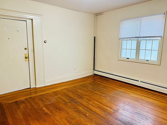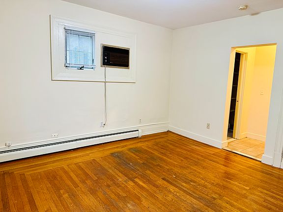 Ample-sized bedroom, full bathroom that was just renovated/retiled. Hardwood floors. Rent includes heat (apt. has its own thermostat) and hot water and one off-street assigned parking space. Apt. also has separate back entrance as well as front entrance.