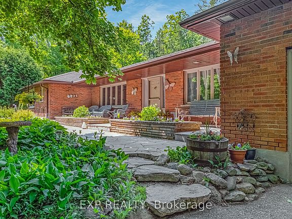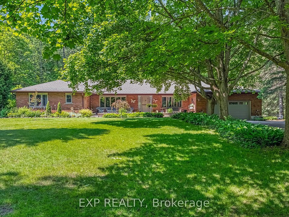 Nestled on 10.6 acres in the heart of Uxbridge, this all-brick bungalow blends rural charm & modern comfort. Nearly 2,500 sq ft on one thoughtfully designed level + full bsmt, this 4-bdrm home is bright, inviting & ideal for family living & entertaining. The attached garage is a true double car, measuring 22.7 ft wide x 22.3 ft deep, an incredible space for full-size vehicles plus storage. Oak plank floors span the main level, flooded w/ natural light. The chefs kit is a showpiece: s/s appls, dual JennAir oven, 5-burner gas range & white oak live-edge island anchoring the open kit/dining space. Flowing seamlessly into the living room, coffered ceilings, a cozy gas fireplace & adjacent grand room create perfect gathering spots. Main-flr laundry, 4 spacious bdrms & a large partially finished bsmt offer everyday comfort. The primary suite is a private retreat w/ ensuite & dbl closet. Outdoors, 8 ac of mature hardwood forest w/ walking trails form a private sanctuary, while a 2-ac open field framed by a classic 10-yr split-rail fence adds character. At the center stands a 24' x 36' barn w/ loft currently storage, but designed for horses. The home is on natural gas furnace, HWT, dryer, cooktop & BBQ hookuprare for rural living. Set w/in Ontarios newest Provincial Park, the property connects to endless trail systems. Enjoy the expansive deck w/ built-in outdoor FP, explore the forest, or make use of the versatile barn the lifestyle options are endless. Only 2 Kms to Town and a easy commute to Toronto. This estate delivers space, style & a coveted Uxbridge setting peaceful, connected & ready for your next chapter.